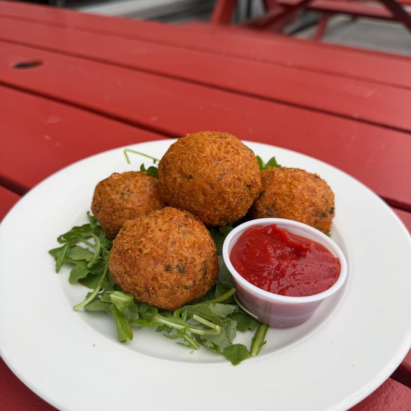 Mozza Cheese Wrapped in Mashed Potato with a Dipping Sauce